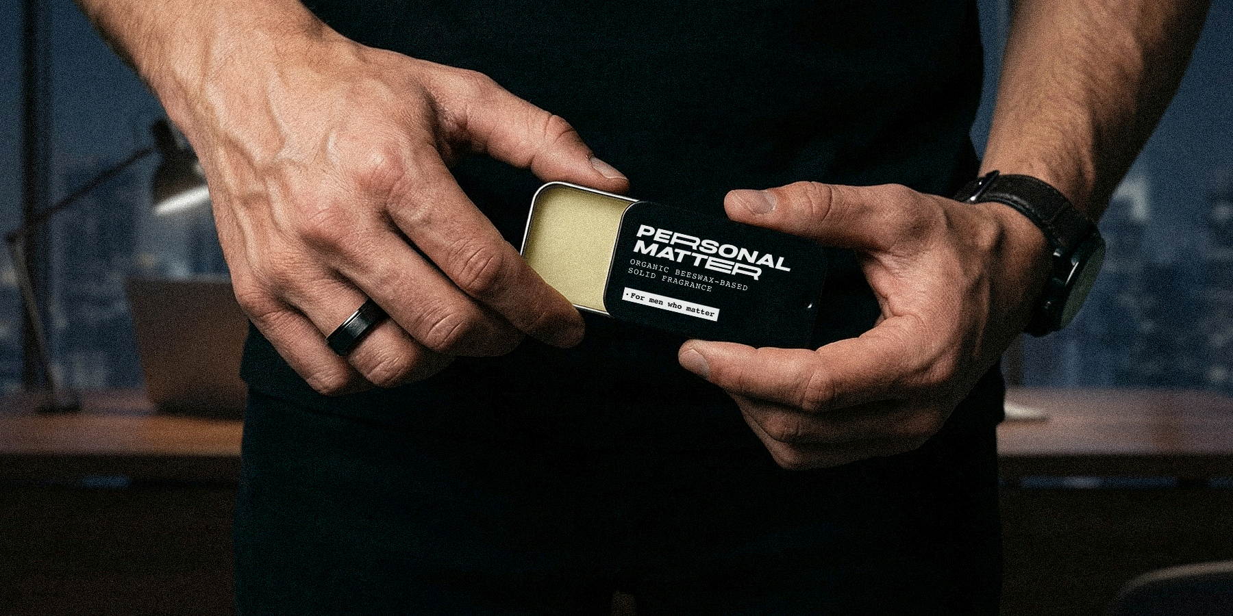 Because details decide everything. Personal Matter isn’t a loud spray that fades in an hour. It’s a solid, wax-based cologne that warms with your skin and stays close, intentional, controlled, refined. Pocket-sized. Spill-proof. Subtle when you want it to be. Strong when you need it to be.