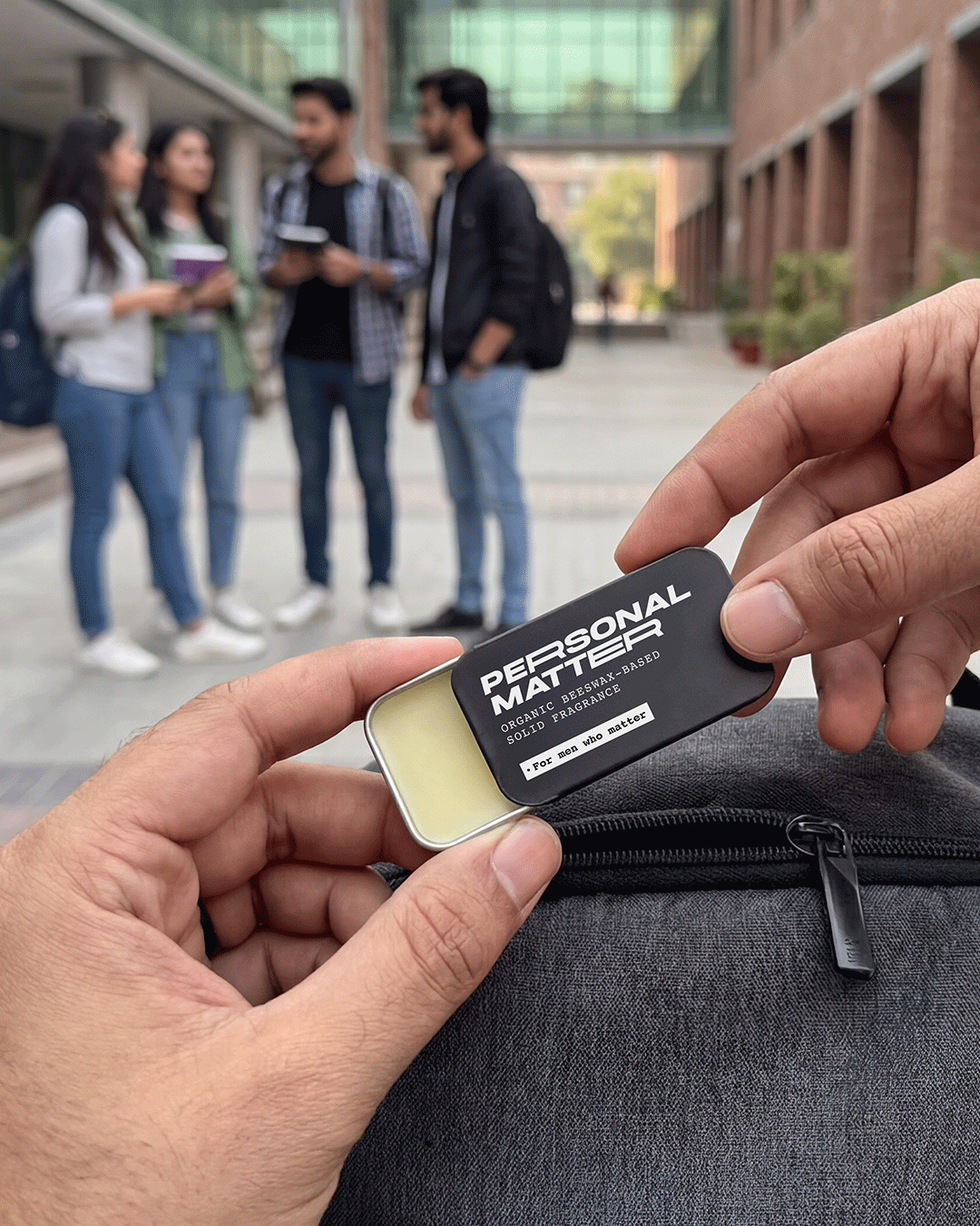 Because details decide everything. Personal Matter isn’t a loud spray that fades in an hour. It’s a solid, wax-based cologne that warms with your skin and stays close, intentional, controlled, refined. Pocket-sized. Spill-proof. Subtle when you want it to be. Strong when you need it to be.